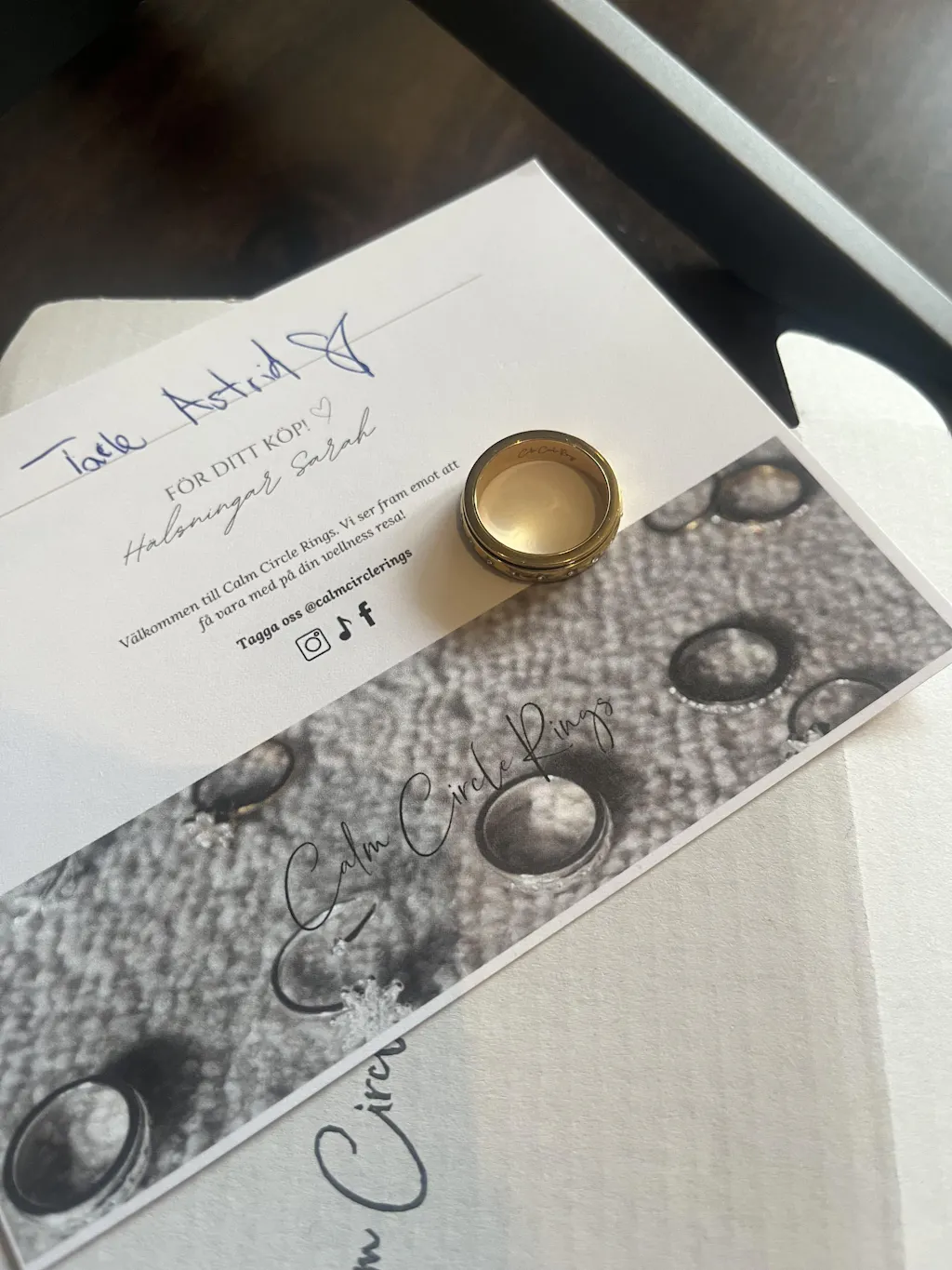 Jättefin ring och fick en glad tjej här hemma, plus i kanten för snabb leverans och ett handskrivet tackkort 👍